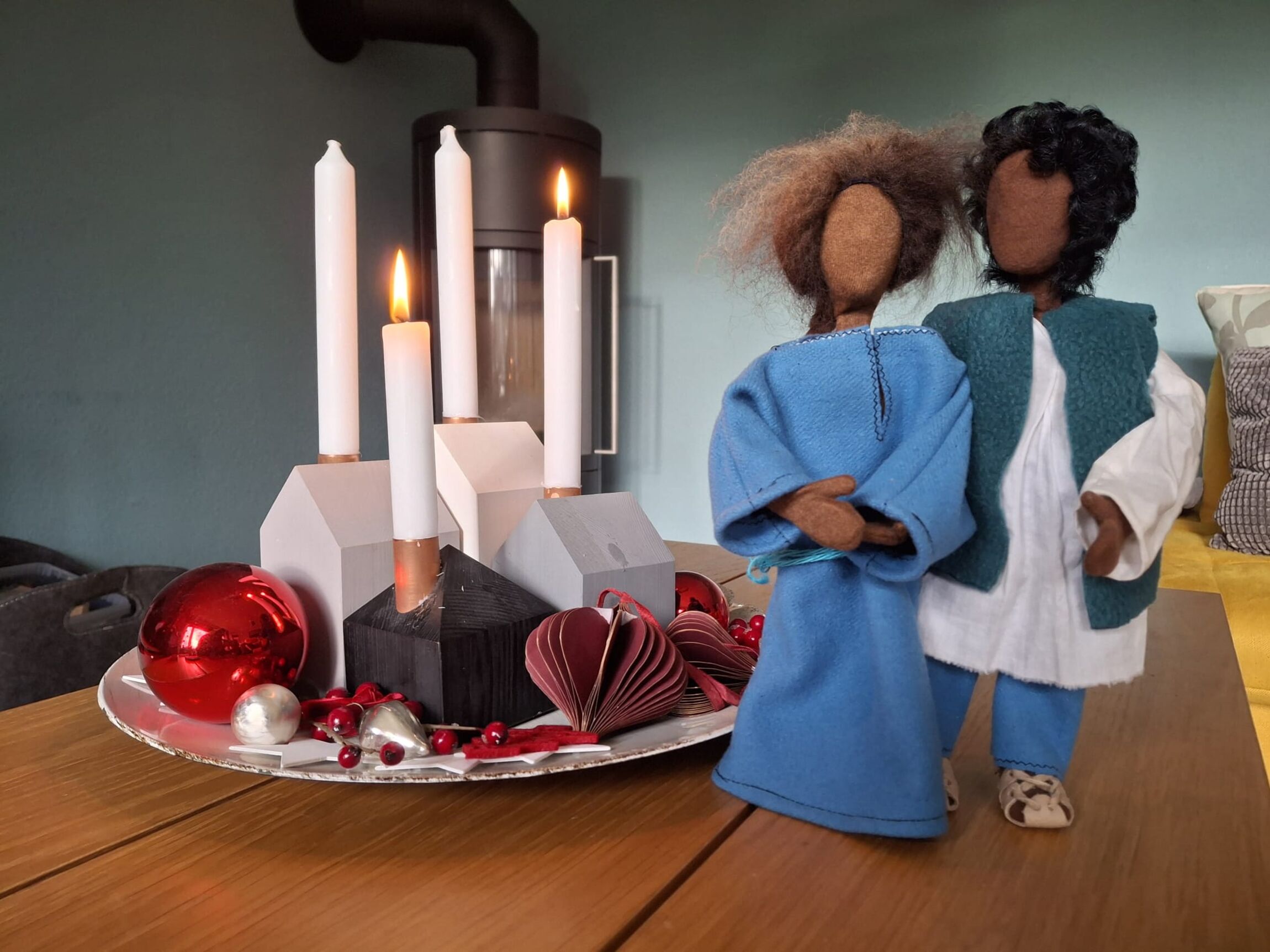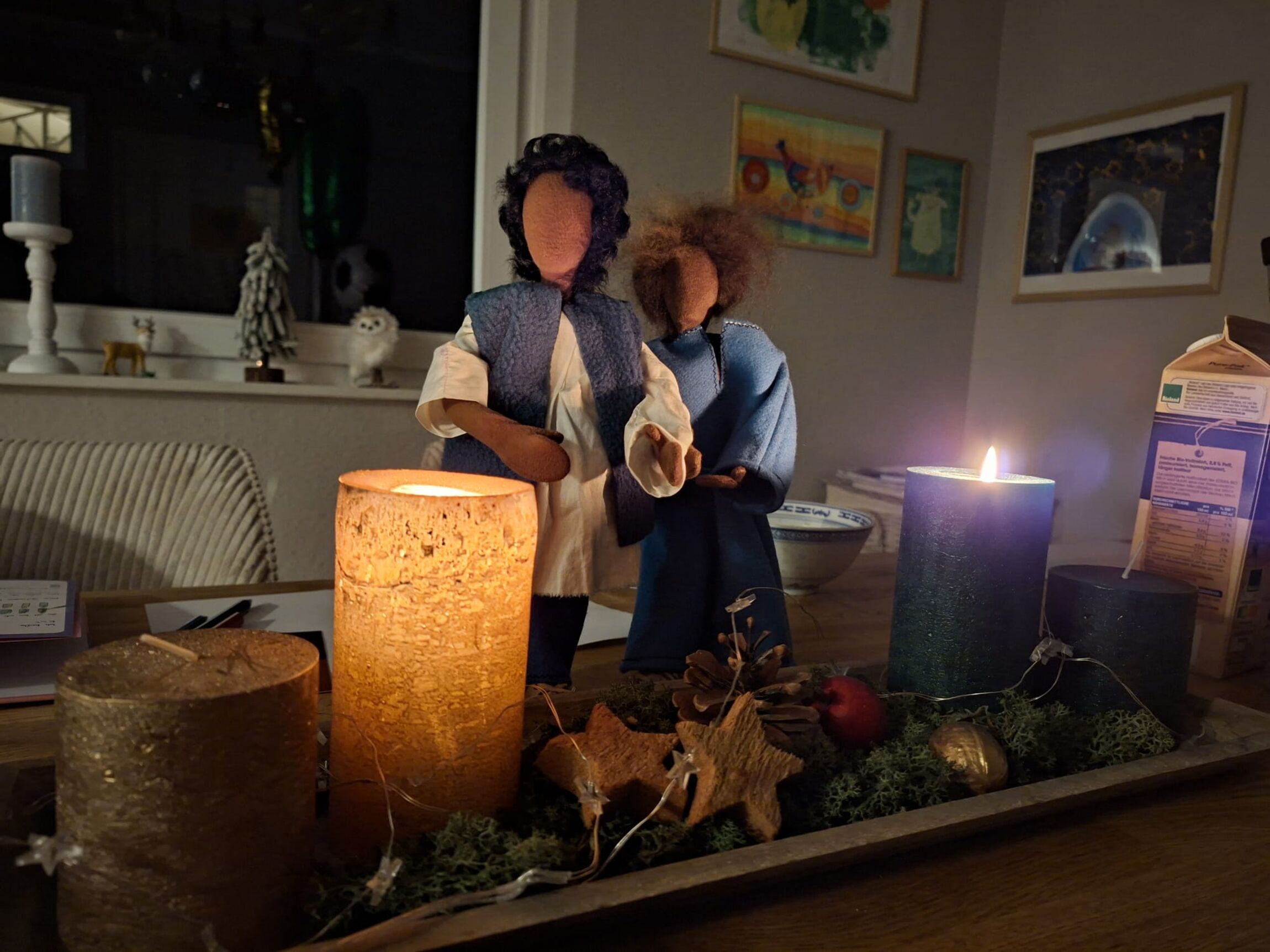 Maria und Josef haben heute Nacht bei Toni geschlafen. Wir haben besinnlich den 3. Advent ausklingen lassen und sind fröhlich in den neuen Tag gestartet.