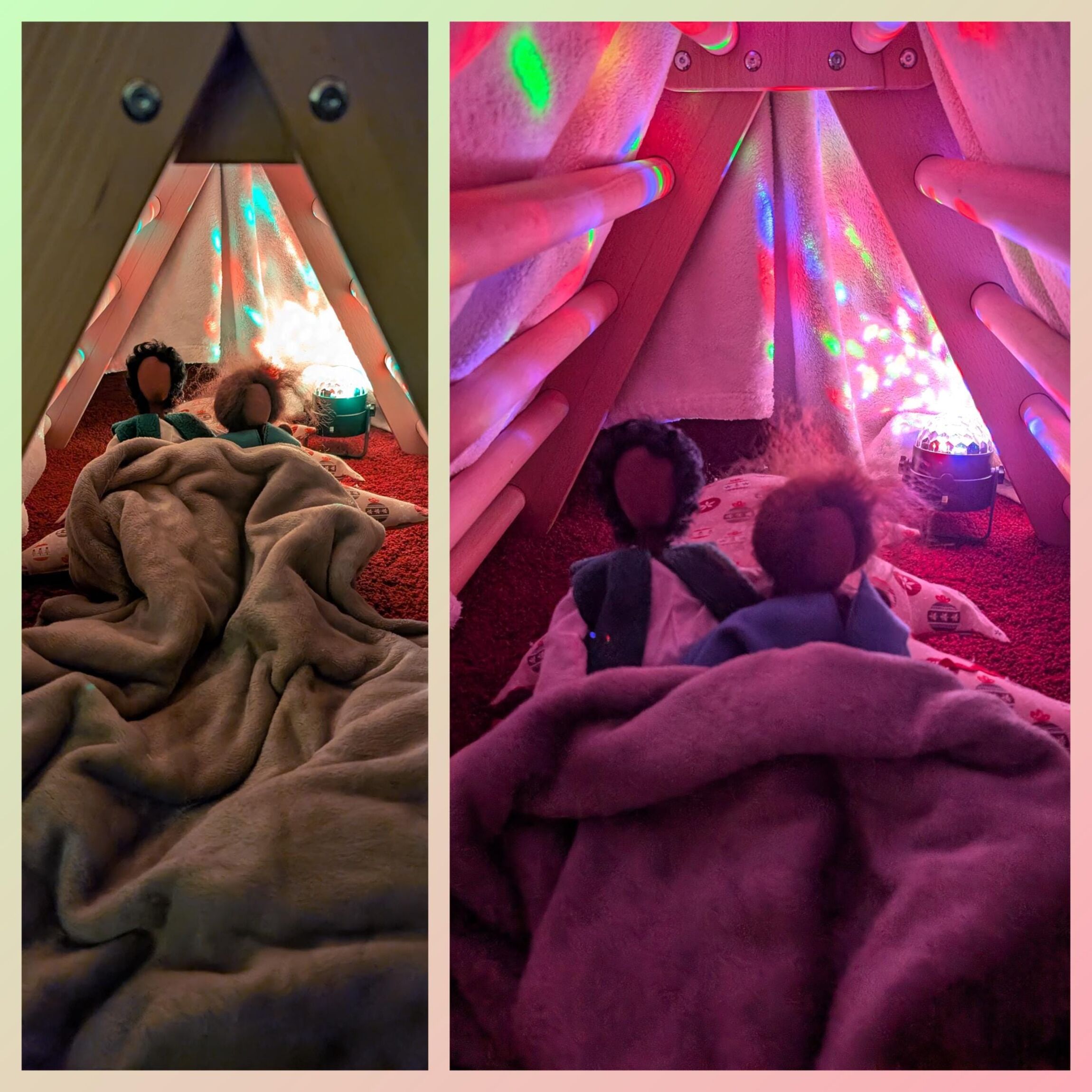 Auch hier konnten die Wichtel nicht die Finger von den beiden lassen und haben mit lustigen Wäscheklammern für Gelächter am Morgen gesorgt.