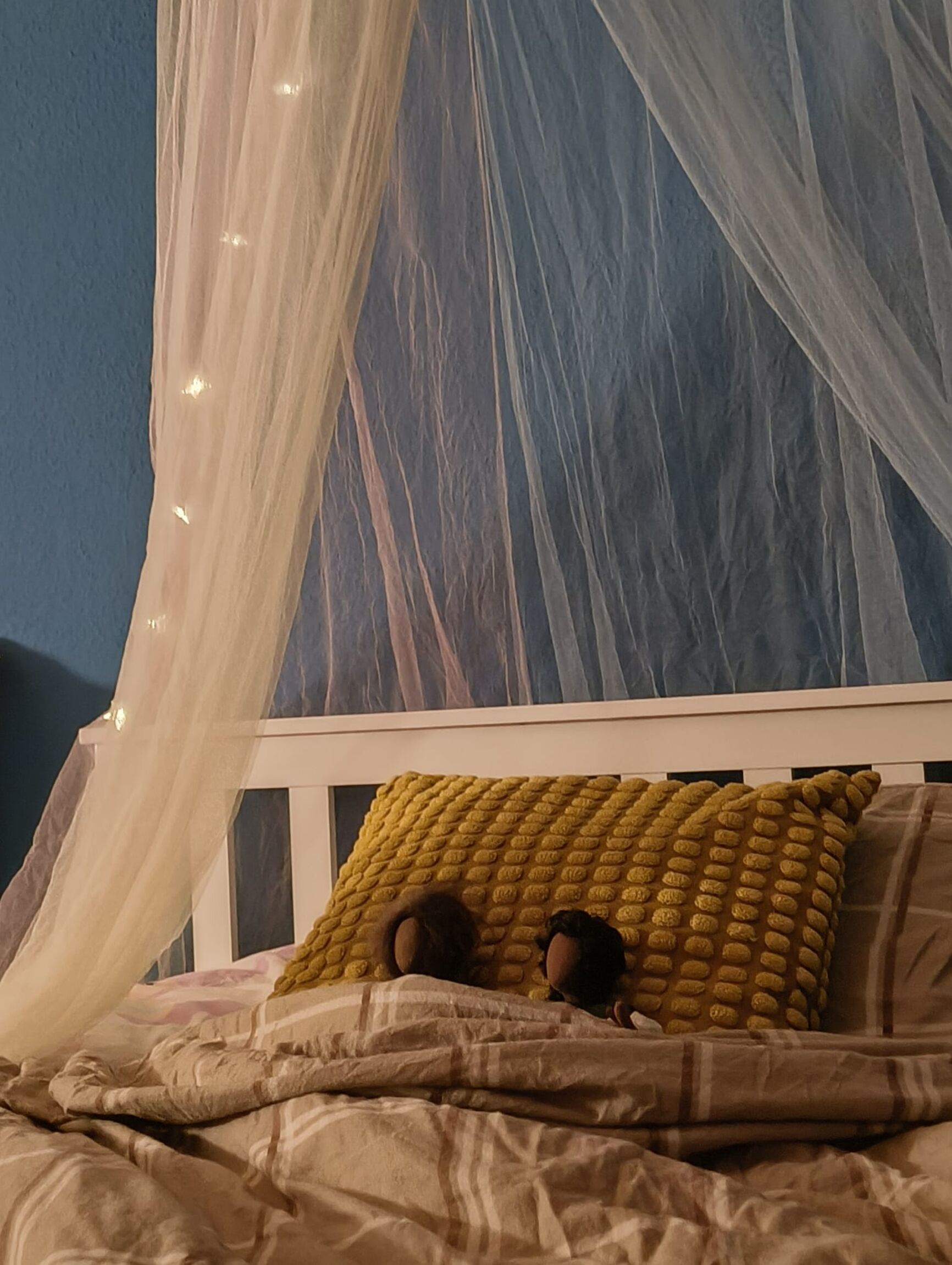 Die nächste Station zur Übernachtung war bei Fam. Robbe in der Wörther Straße. Dort durften sie in einem beleuchteten Himmelbett schlafen. Das war bestimmt sehr kuschelig.